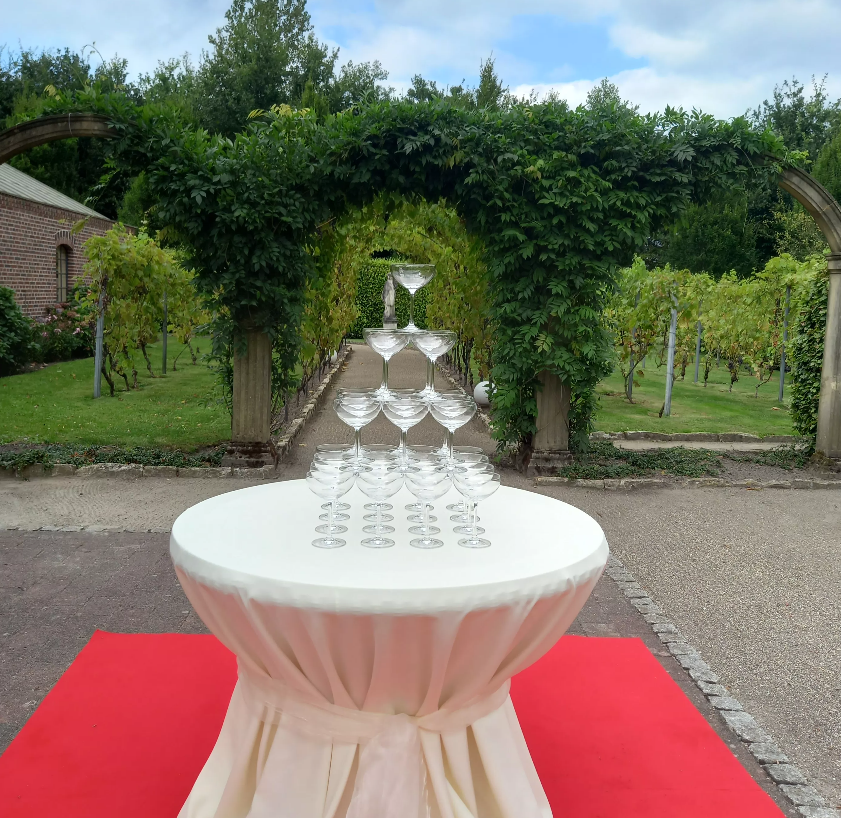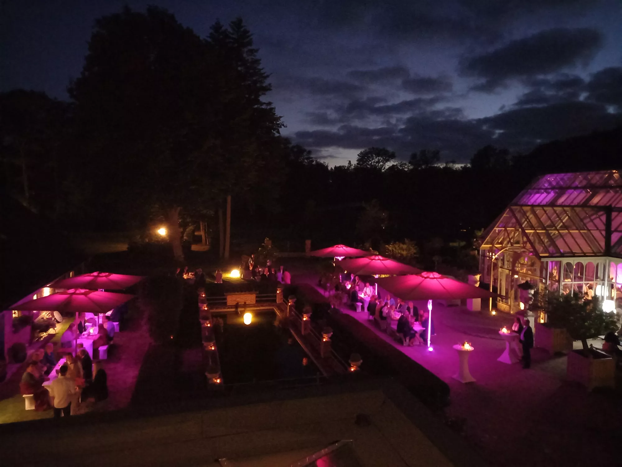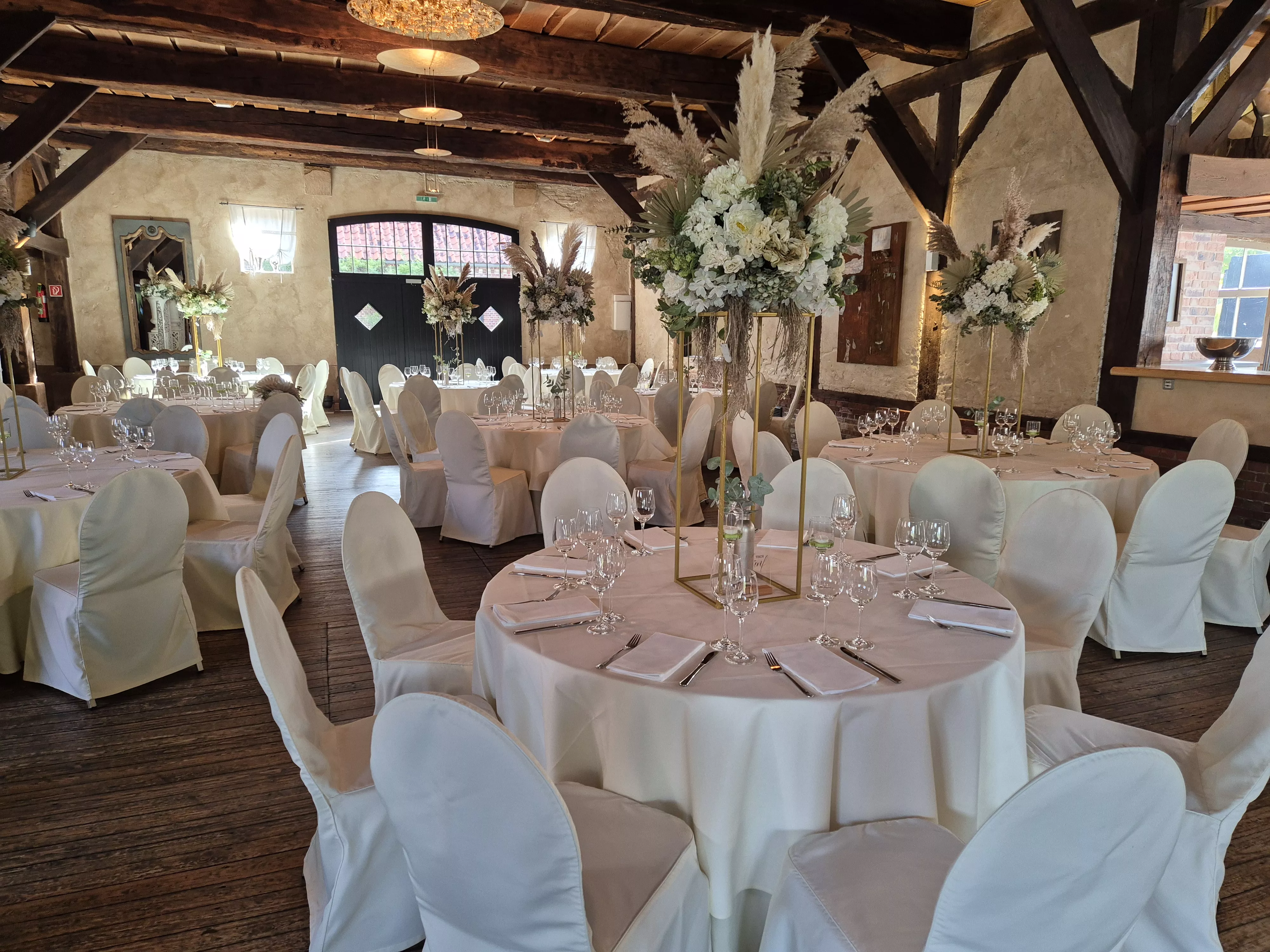 Erleben Sie den Empfang Ihrer Gäste inmitten unserer gepflegten, historischen Hofanlage. Die lichtdurchflutete Orangerie bietet mit ihren edel gedeckten, runden Tischen eine Kulisse, die zum Träumen einlädt. Ob bei strahlendem Sonnenschein oder unter dem Sternenhimmel, wir schaffen für Sie unvergessliche Momente mit echtem Gänsehautgefühl.
