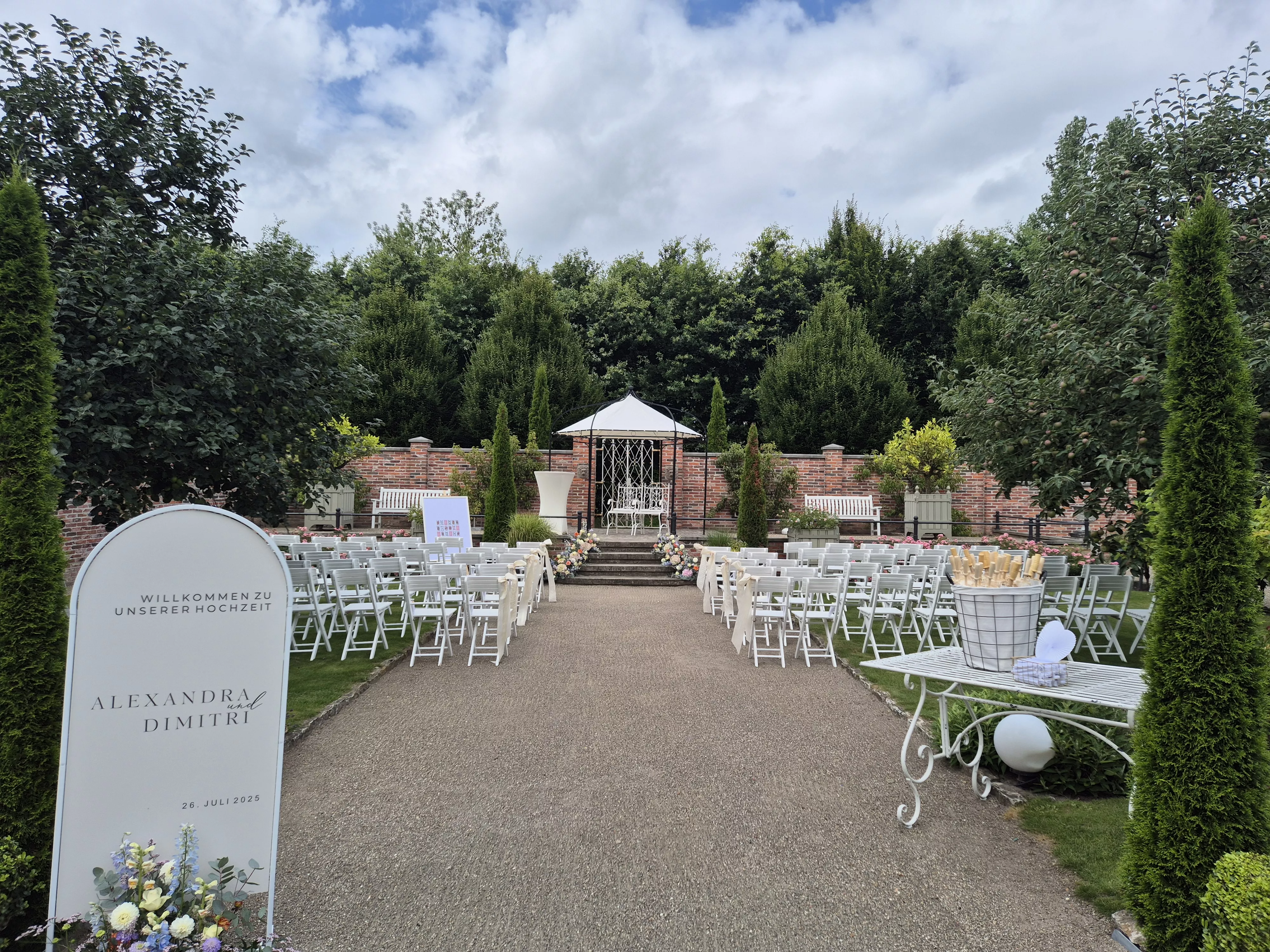 Erleben Sie eine unvergessliche kirchliche oder freie Trauung inmitten unserer idyllischen Parkanlage. Der Hochzeitsgarten bietet Ihnen eine märchenhafte Kulisse, in der Sie sich im Kreise Ihrer Liebsten unter altem Baumbestand das Eheversprechen geben können. Die natürliche Stille und das blühende Ambiente schaffen eine Atmosphäre, die Ihren besonderen Moment perfekt einrahmt.